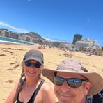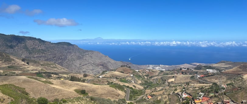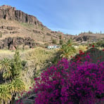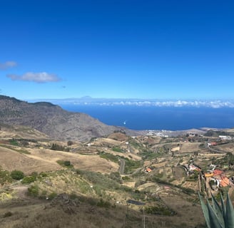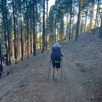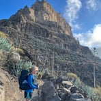 The third and final phase of our Spain 2024 trip was a 70 km, 4-day walk across, up and over Gran Canaria Island from the beach resort towns of Masapoloma north to Galdar, (once the leading banana exporter to Spain). After leaving flocks of European beach-seeking weekenders, we quickly found ourselves in a moonscape, a dramatic change from the beach only a few miles away. The terrain ascended through a grey and red landscape resembling the US Southwest and rose sharply, passing yucca and pine. A few small white villages dotted the hillsides and the contrast between vast sky, deep blue ocean, tall pine and fir tree, and red rocks was exhilarating. We were largely alone with no other Peregrino's and few services. Our simple accommodations over the 4 nights were varied and provided everything we needed at the end of the day. The views got better each day as we rose further up. Other Canary Islands across the ocean, like Tenerife and Fuerteventura, beckoned for perhaps a future visit!